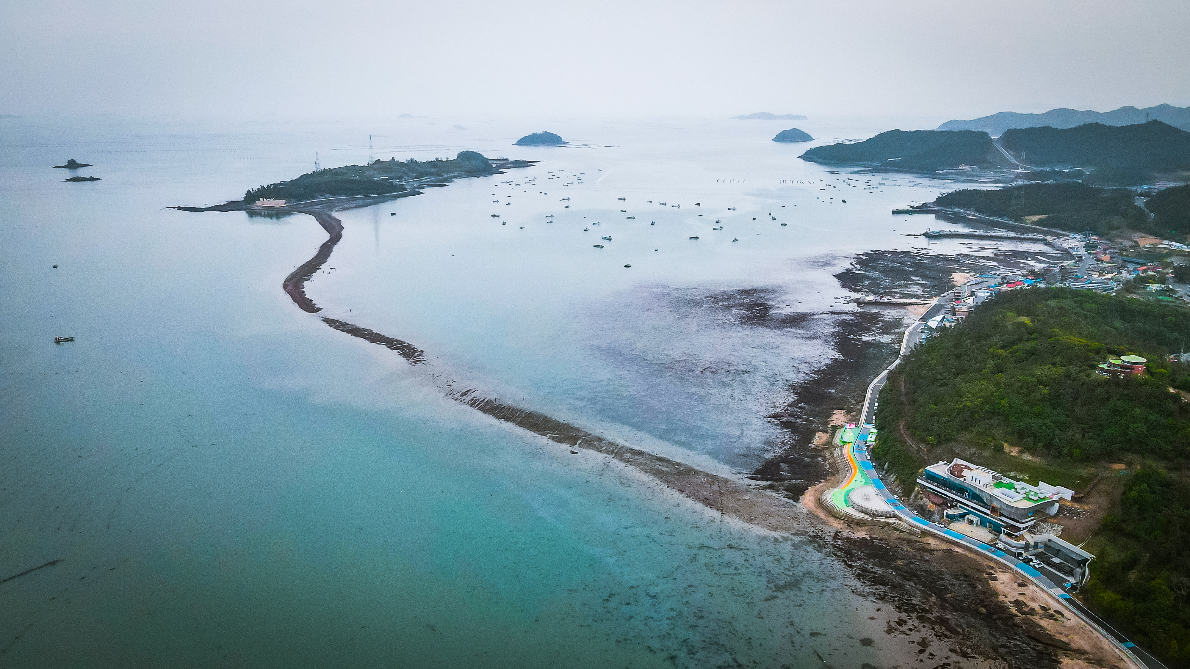 관광 포인트:특이하게 시멘트로 포장된 바닷길이 열려 갯벌 사이로 드라이브를 즐길 수 있음.