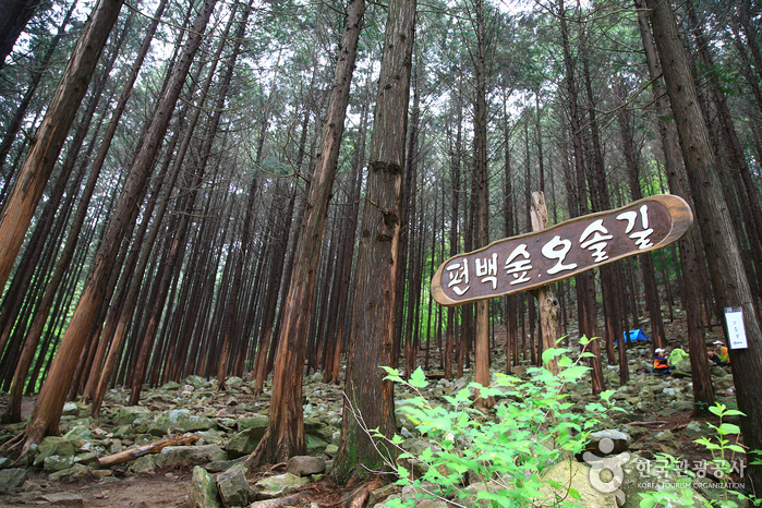 환혼에서 송림 정진각의 입구로 가는 곳입니다. 이 곳은 완주 편백나무숲인데요. 화면으로도 보이지만 울창한 편백나무가 빽빽히 들어서 있는 모습이 인상적입니다.
