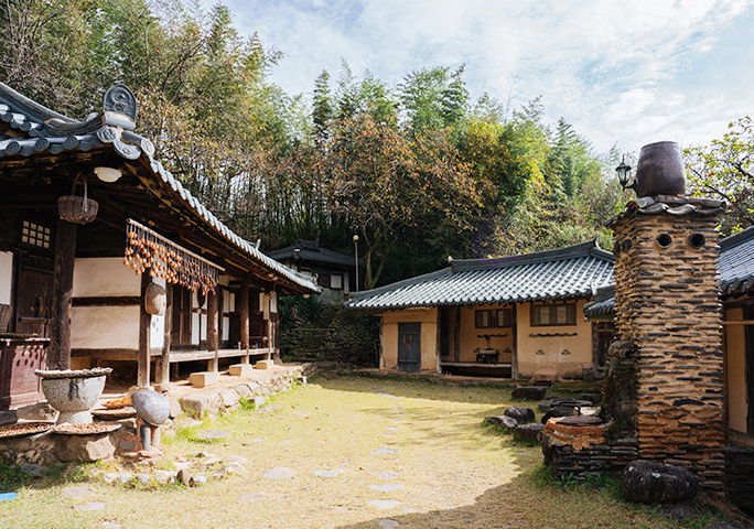 드라마에서 송림과 마을을 나타내는 곳입니다. 알록달록한 나무와 전통가옥이 어우러진 모습이 장관인 곳입니다.