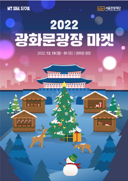 대형 트리, 크리스마스 포토존, 마켓부스 등 따뜻한 크리스마스 분위기를 자아내는 ‘광화문광장 마켓’도 있다고 합니다. 크리스마스 소품, 수공예품, 먹거리 등의 판매부스와 다양한 서울관광 콘텐츠 체험/전시까지 다양한 즐길거리가 있다고 하네요.