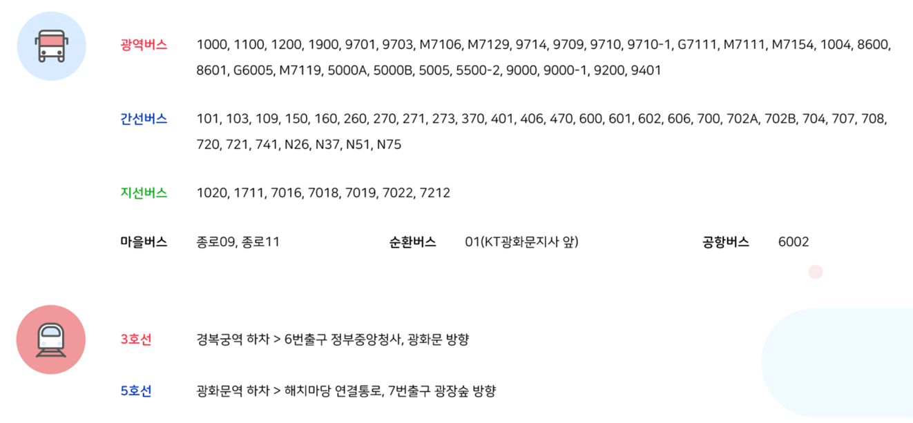 그 밖에 광화문 광장 부근에서 내리는 버스를 이용해도 됩니다.
